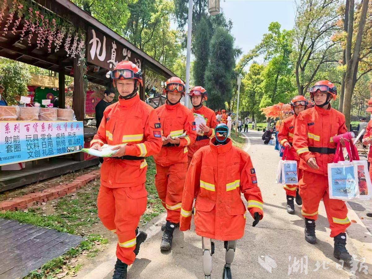 在森林防火方面,支队同样打出“科技牌”。清明时节,在龙泉山、青龙山上空,EC225直升机以300米低空巡航,第一时间发现早期火点;地面,宇树Go2机器狗在泥泞湿滑的山路上如履平地,宇树G1机器人则化身“防火宣传员”,向游客播报安全须知。“天上看、地上查、机器跑”的立体防控模式,有效填补了单一人工巡护的盲区,实现对重点林区的全覆盖监控。在九真山景区,前置分队创新运用两台宇树Go2机器狗与一台宇树G1机器人组成“科技编队”,吸引众多游客驻足,在互动中传递防火知识。